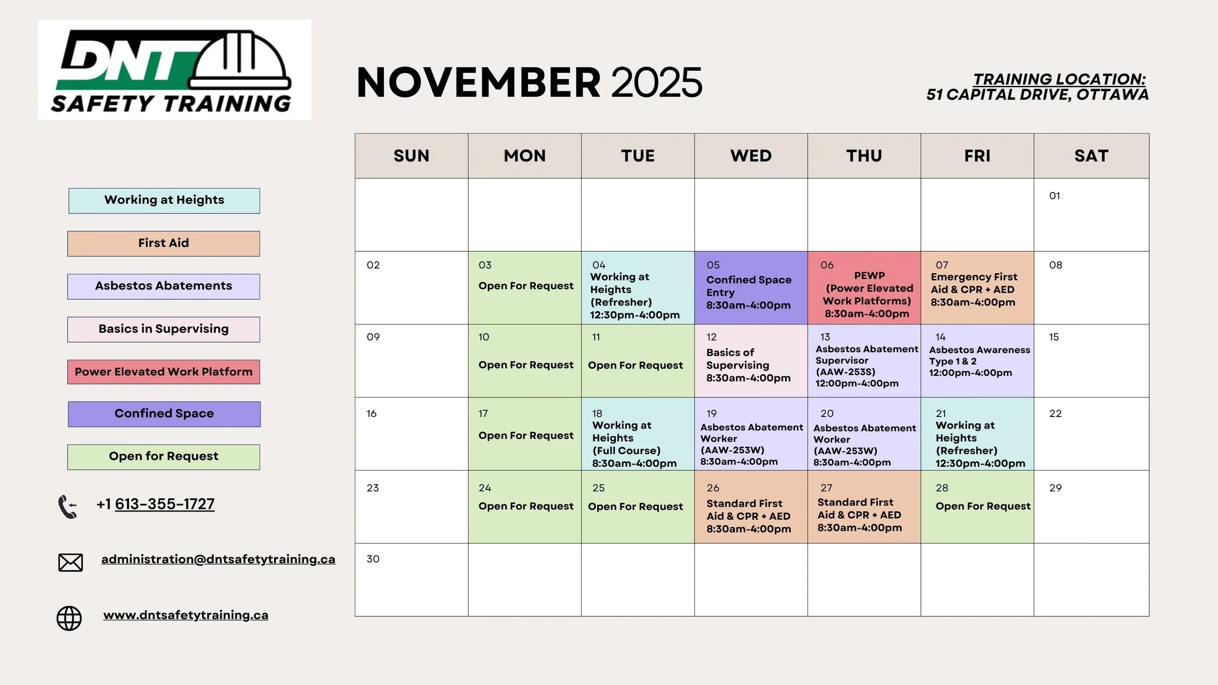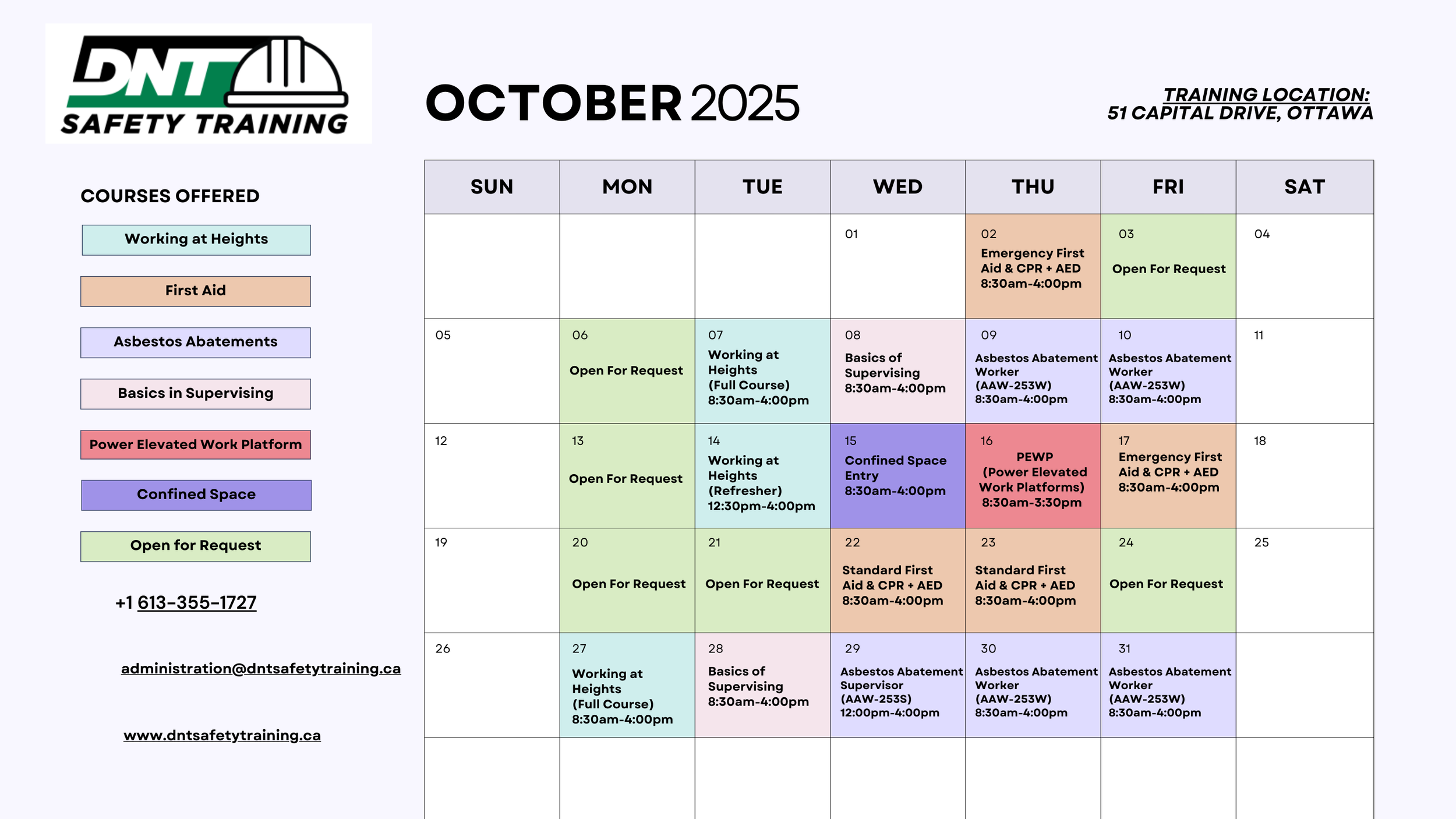 "Tyrone Fewer, DNT Safety Training, has been our company go-to for both training and employment personnel for the seven years I’ve been working at my current employer plus many more years before that. He is reliable, knowledgeable, professional, friendly, charismatic and knows how to handle people. He accommodates our large groups for all our needs: WHMIS, Ministry of Labour 4 Step and 5 Step, Accessibility, Driver Training, Asbestos Worker (253W) and Supervisor (253S), Working at Heights, Confined Space, Fit Testing, and First Aid. He is always a pleasure to work with and very accommodating to work around our hours and needs. I highly recommend his services."